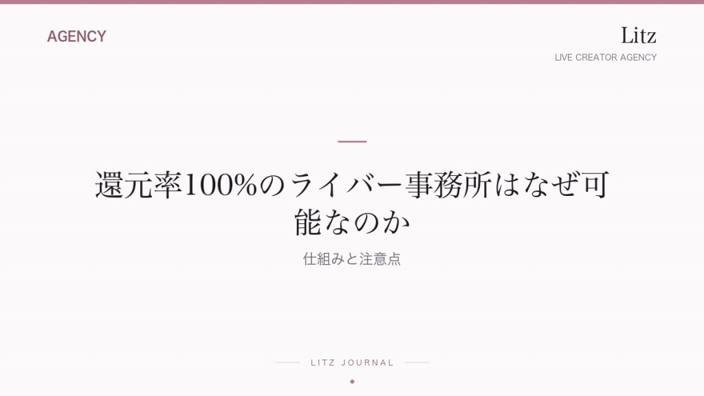 還元率100%のライバー事務所はなぜ可能なのか|仕組みと注意点